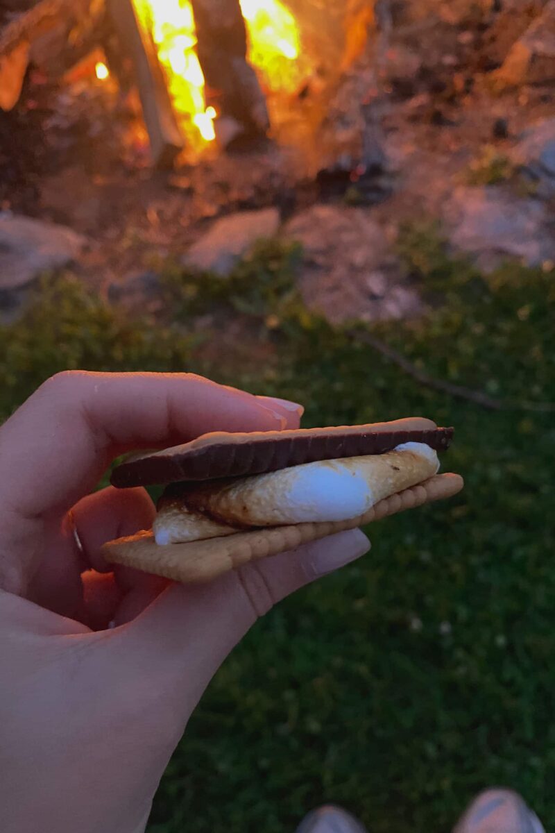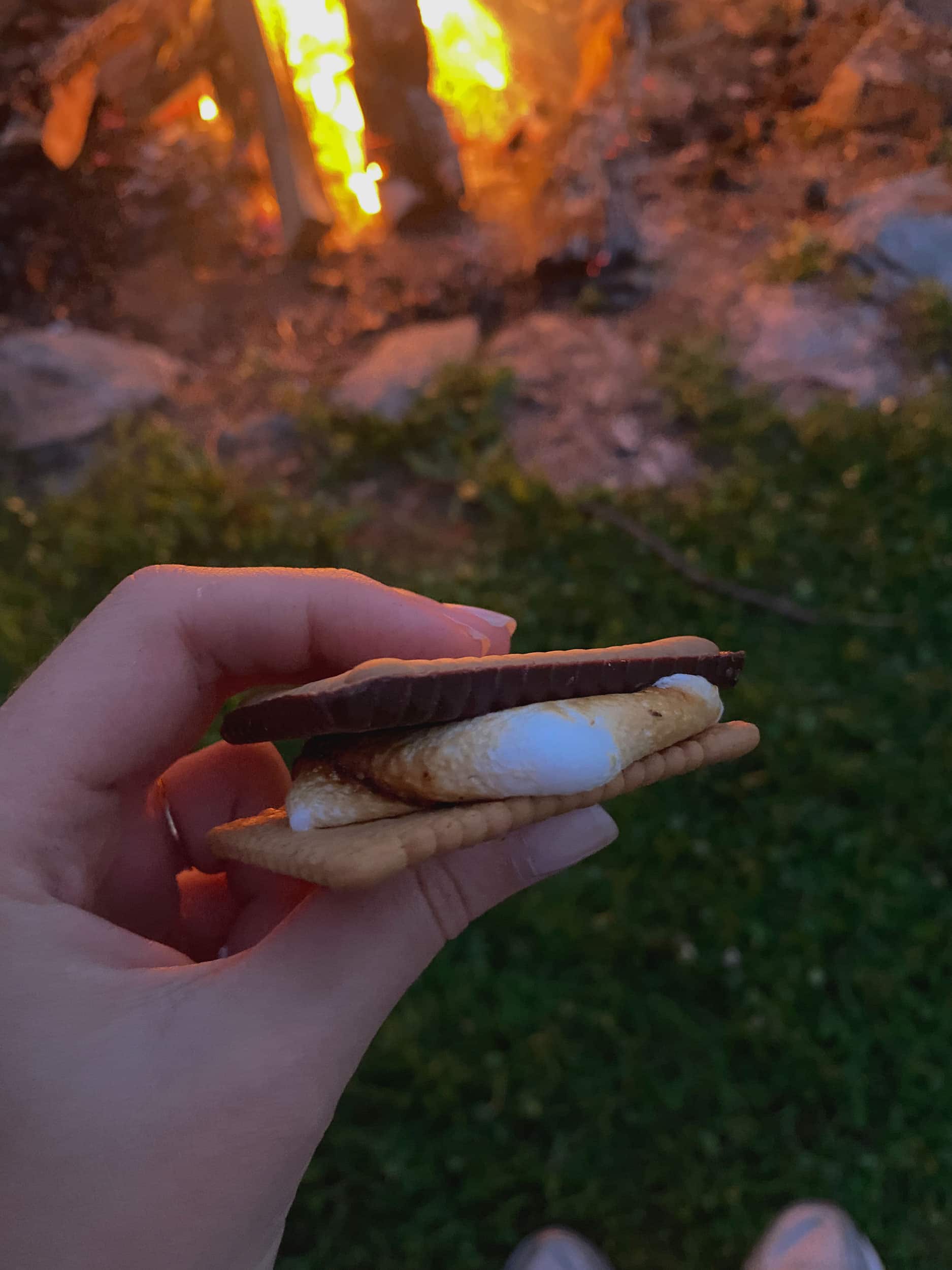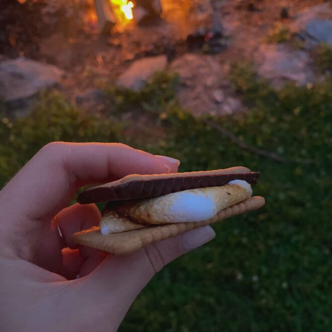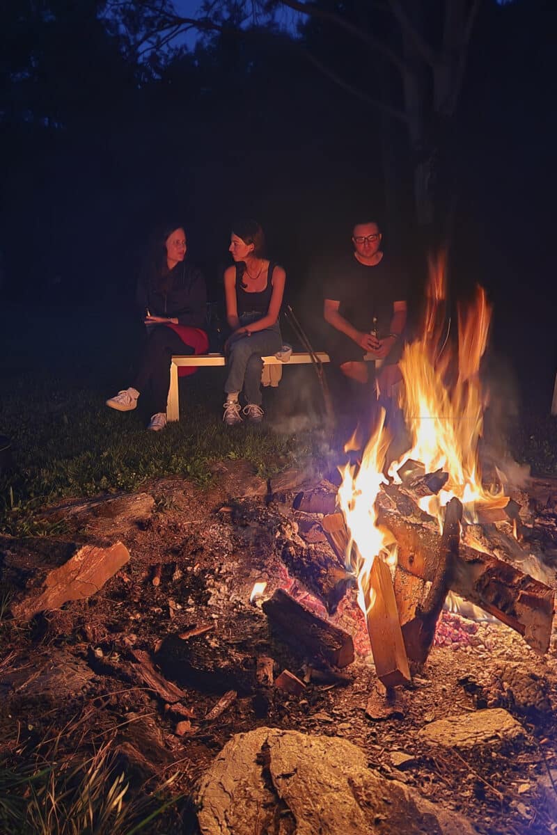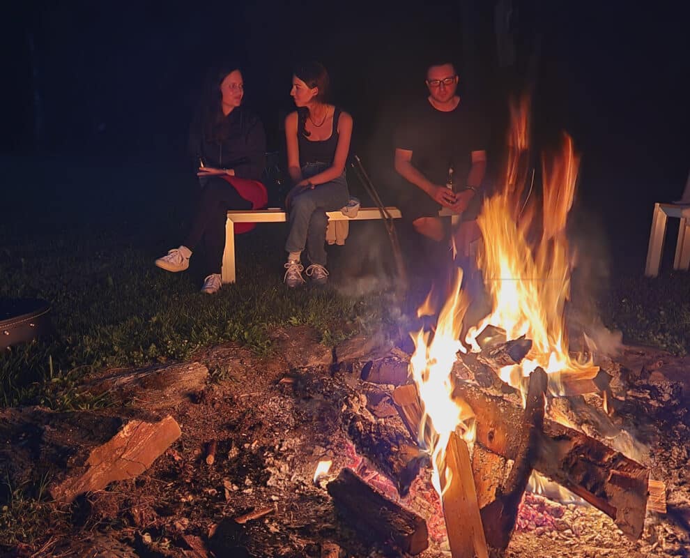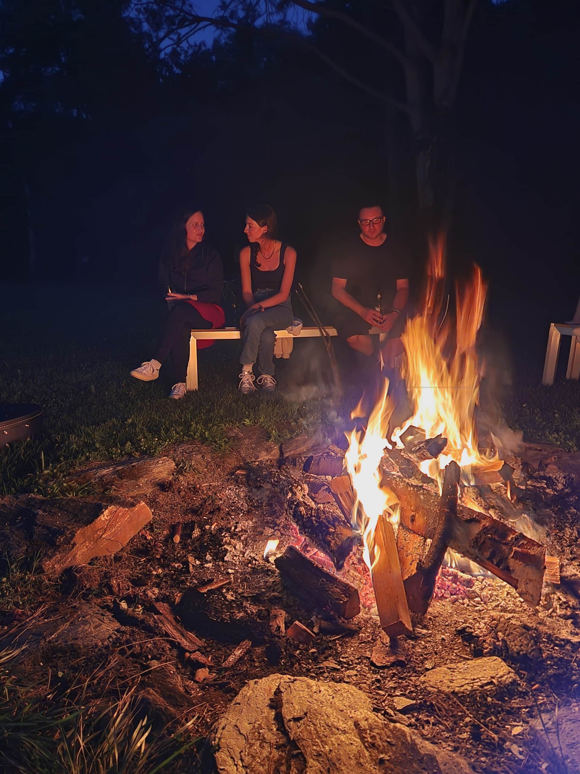 Schließlich war es dann für uns alle an der Zeit wieder etwas runterzukommen. Zum Ausklang gabs daher Spritzer, Bier und S’Mores am gemütlichen Lagerfeuer. Für die musikalische Untermalung sorgten unser Kärntner Saitenwunder Reiner (Gitarre) und Susi (Vocals). Von Nirvana bis Britney Spears – alles war dabei. Umzingelt von Glühwürmchen (wir haben drei gesehen!) spielten wir bis spät in die Nacht Werwolf. Und erlebten ein Fest der lebenden Leichen und gestorbenen Toten.
