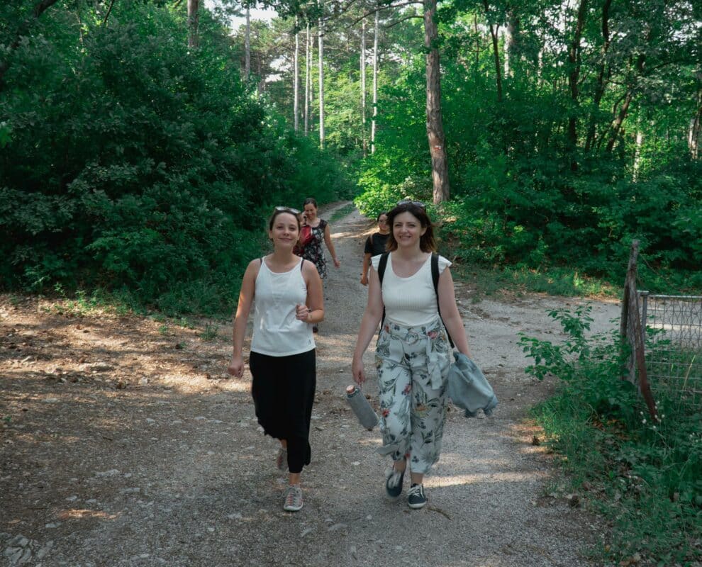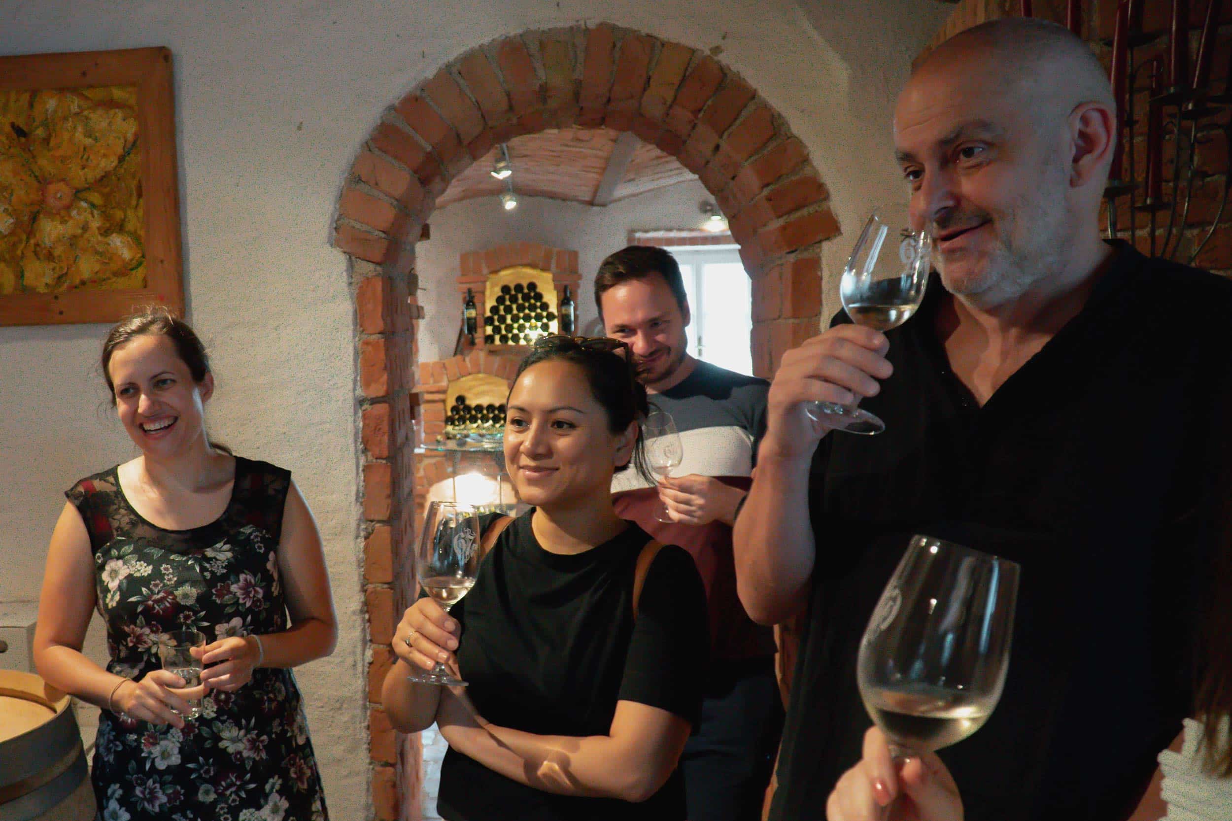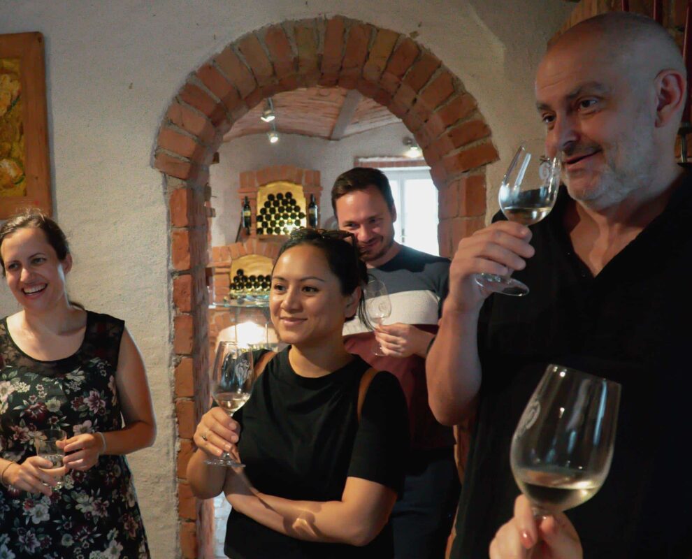 14 Uhr, Feierabend. Um die Köpfe freizubekommen, begaben sich 11 Naturburschen und -burschinnen dann wieder in die niederösterreichische Wildnis. Nach einem „gemütlichen Spaziergang“ – für andere war’s dann doch eher eine Wanderung – mussten wir erstmal etwas trinken. Unser Licht am Ende des Tunnels: die Weinverkostung im Weingut Steiner zum 67er in Sooß. Unsere Sommelier-Susi empfiehlt den Riesling: „der riecht krass und schmeckt gut“. Schnitzel, Eierschwammerl und Marillen-Schnäpse beim Heurigen sorgten für den krönenden Abschluss eines wirklich gelungenen Teambuildings. Tja, wenn man irgendwie irgendwo irgendwann wirklich wunderteams bauen will, dann am besten genau so …