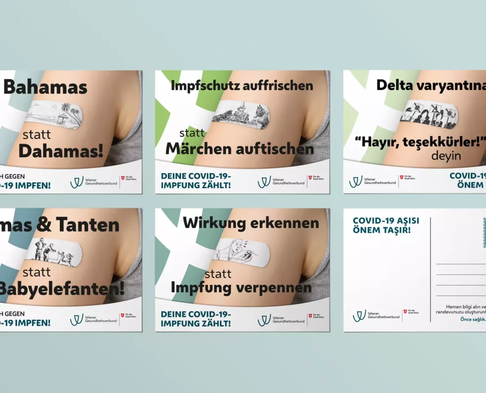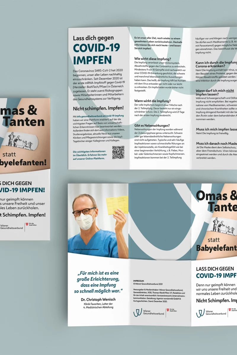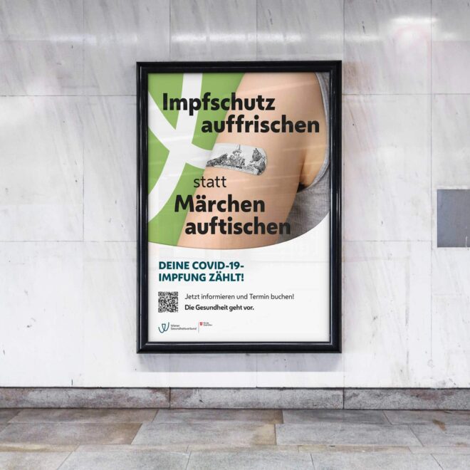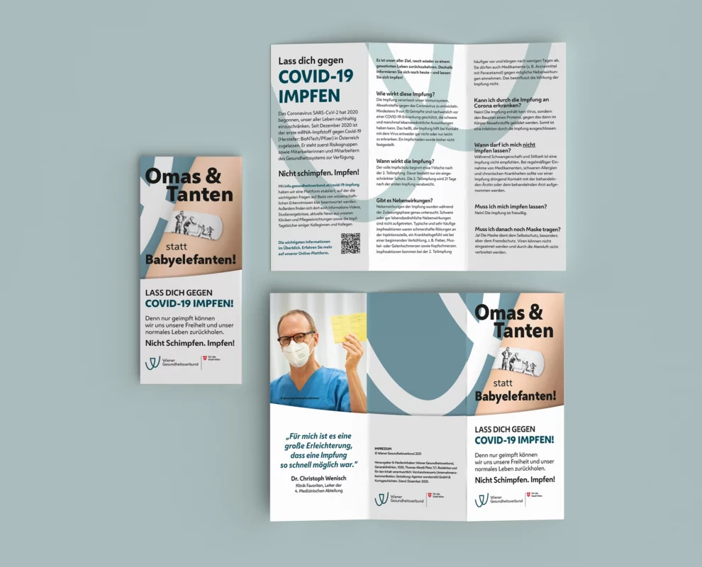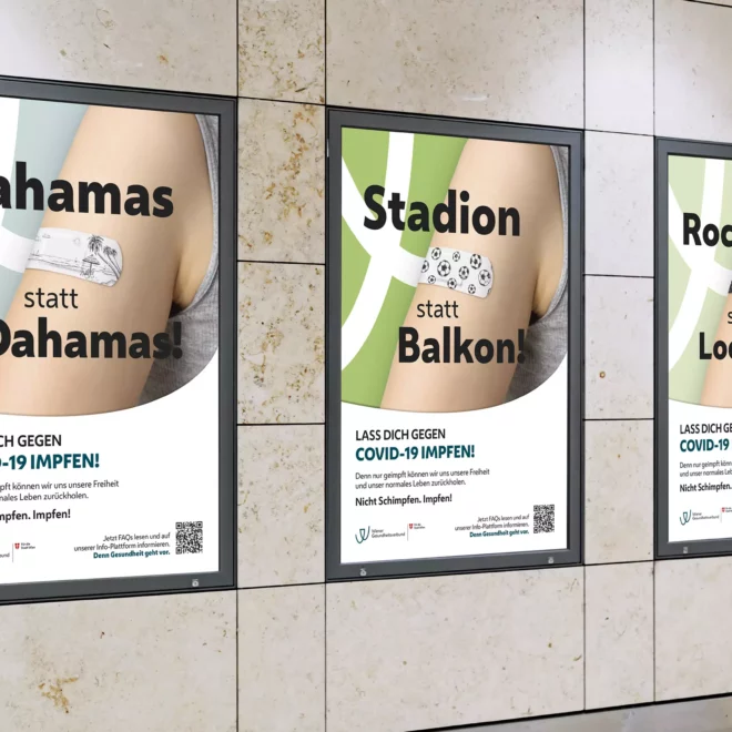 Ein Thema beherrscht das Land. Eigentlich den ganzen Globus. COVID-19. Menschen leben im Lockdown und getrennt von Verwandten und Freunden. Kunst, Kultur, das Leben auf Sparflamme. Der Gamechanger? Die Impfung. Sie ermöglicht den Geimpften wieder mehr Leben ohne Angst vor schweren Krankheitsverläufen haben zu müssen. Das galt es intern für die Mitarbeiter des Wiener Gesundheitsverbundes in einer starken Kampagne zu kommunizieren.